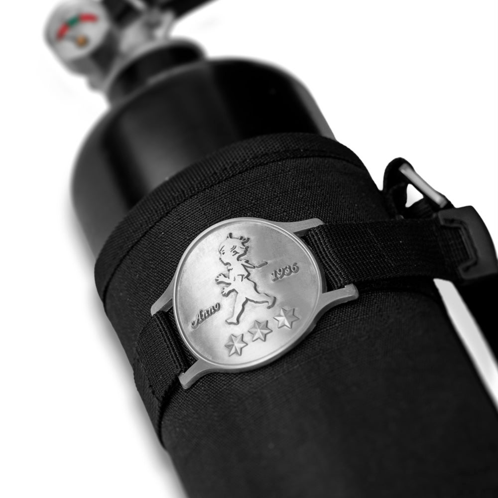 Meant to instill a feeling of ruggedness and portability in the user with black ripstop combined with nylon straps and metal details. The red tag with the name logo on the handle reinforces the aesthetics of the brand.