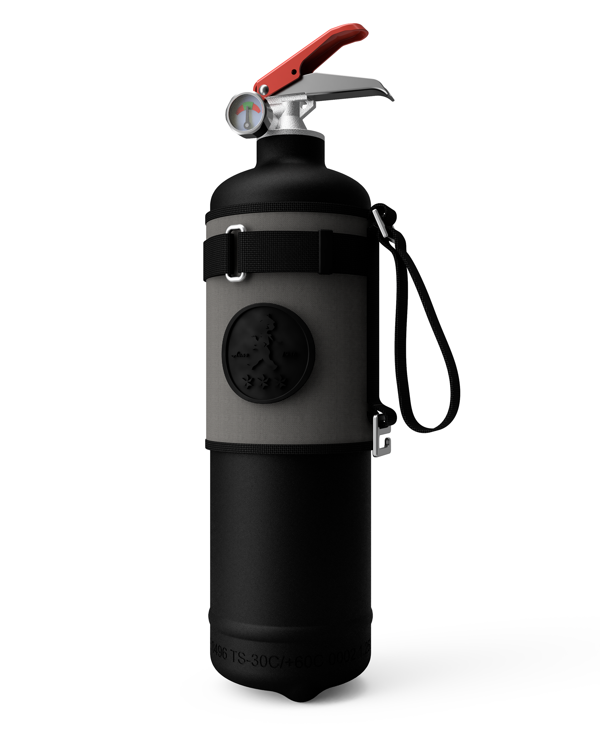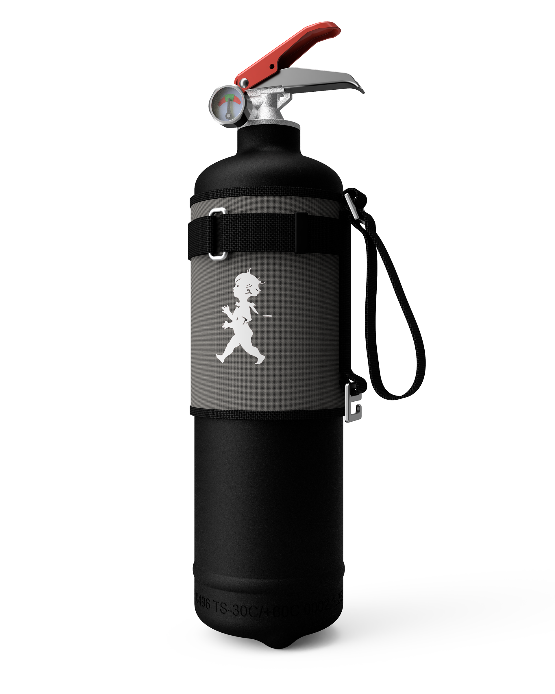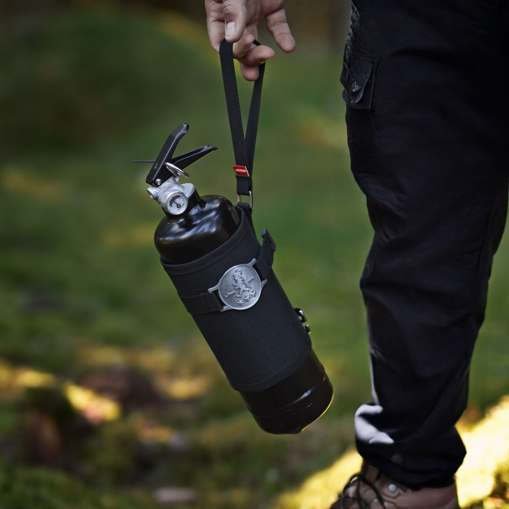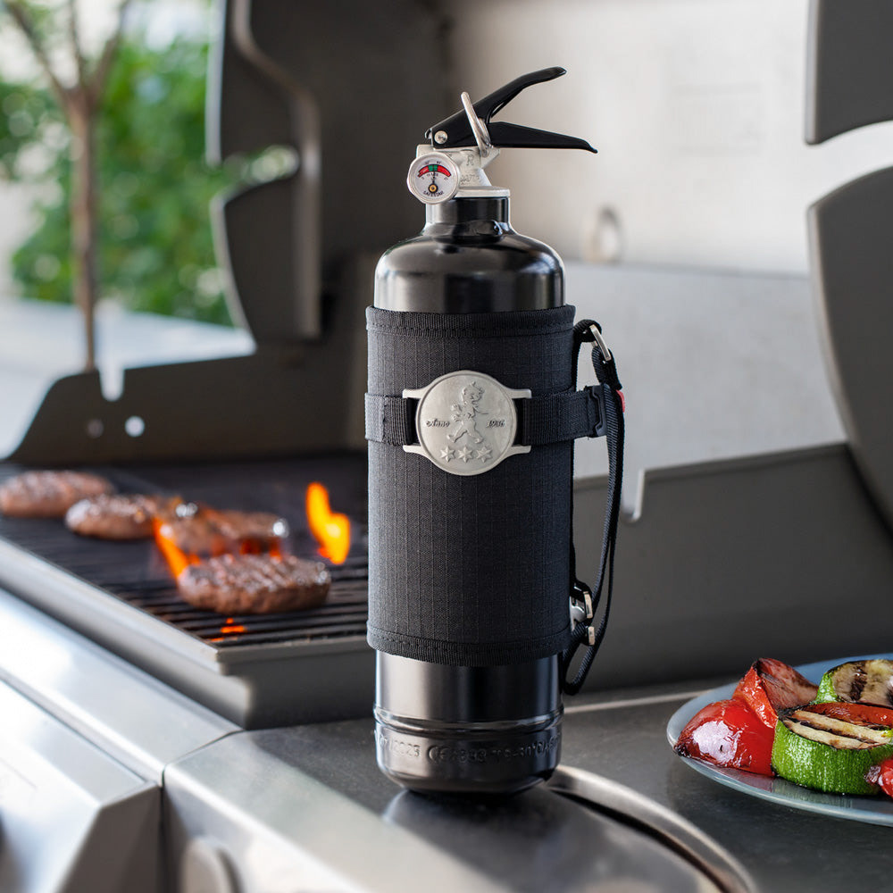 It is a portable fire extinguisher that is meant to come with you, either to the backside barbecue or the outdoors. All whilst improving the fire safety - in style.