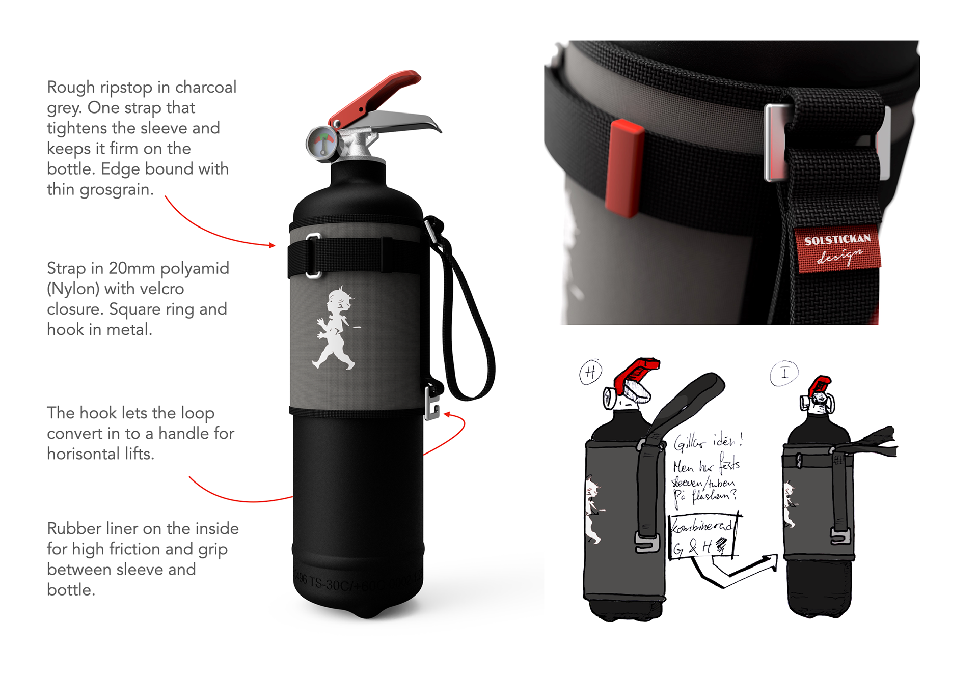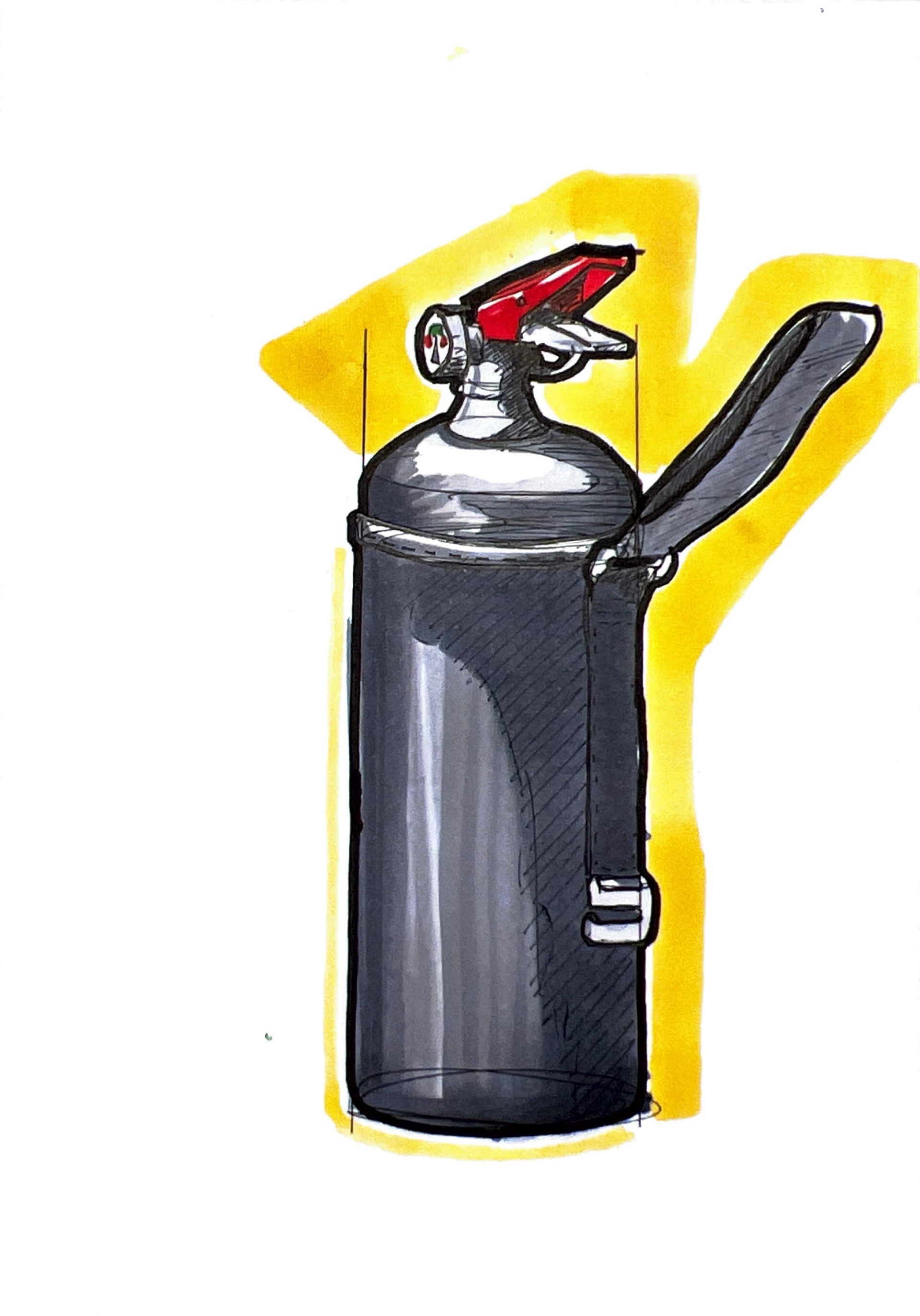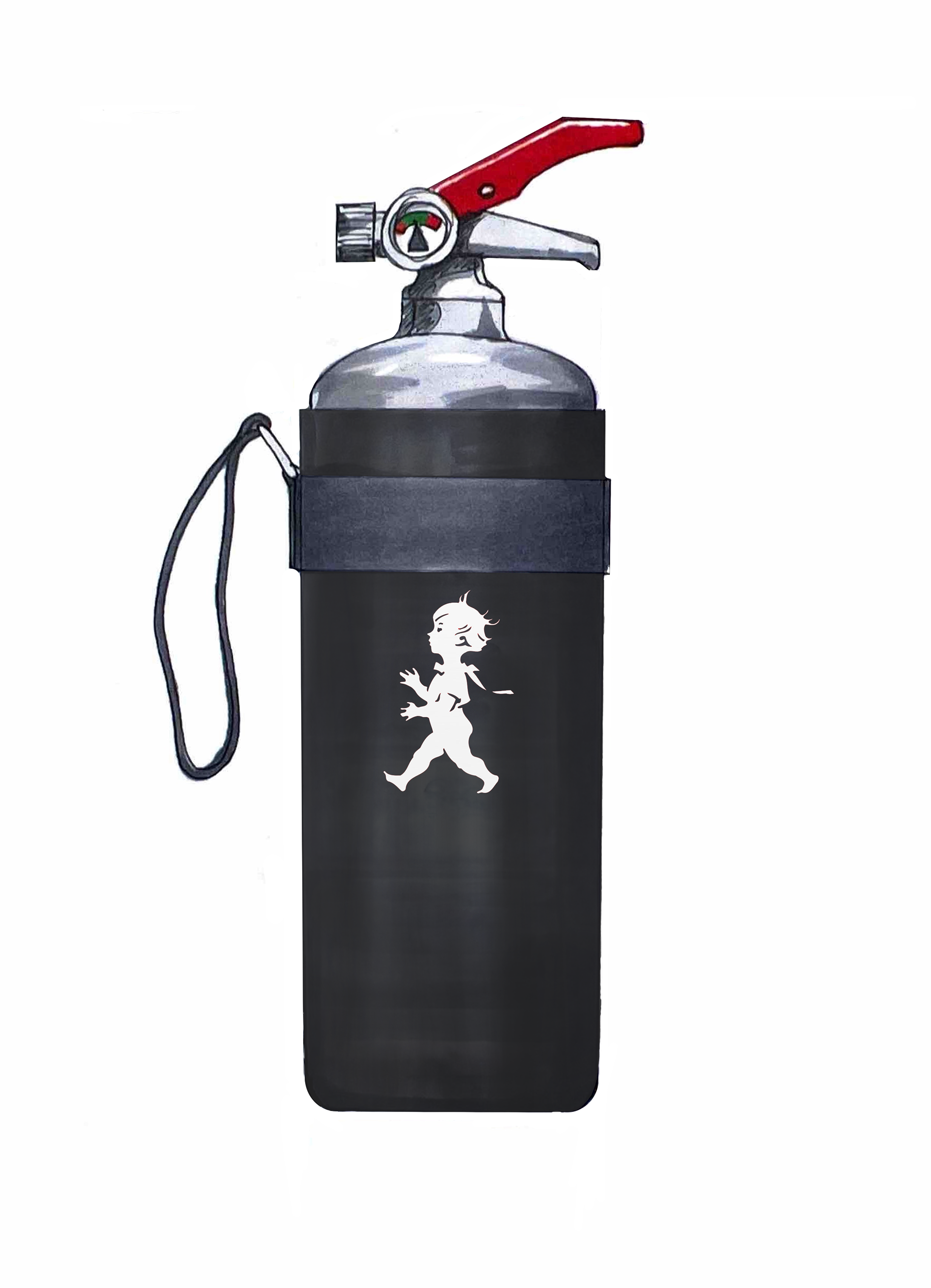 It is a portable fire extinguisher that is meant to come with you, either to the backside barbecue or the outdoors. All whilst improving the fire safety - in style.